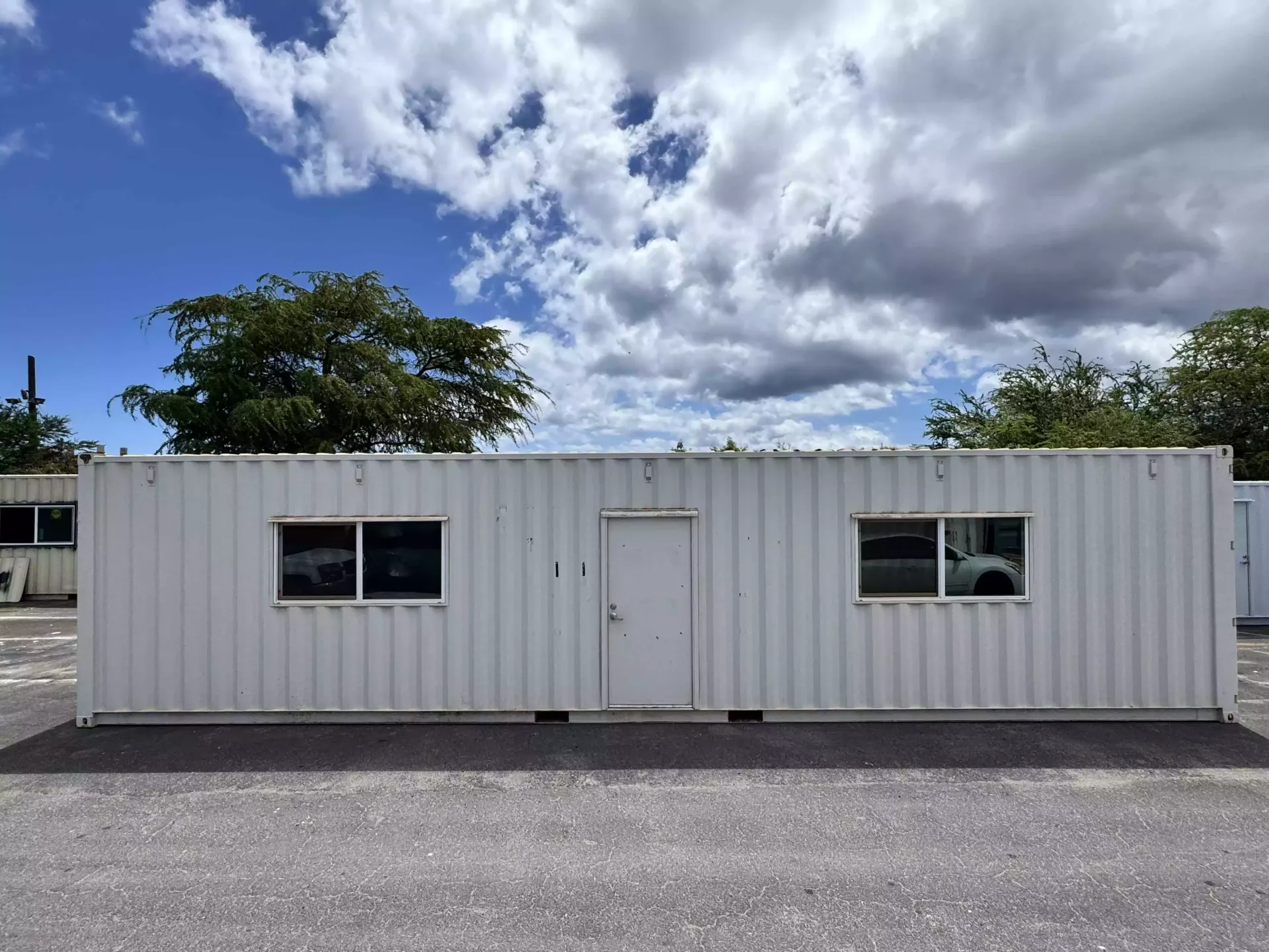 An office container is a modified shipping container designed to function as a fully equipped workspace with insulation, AC, electrical outlets, lighting and secure entry.