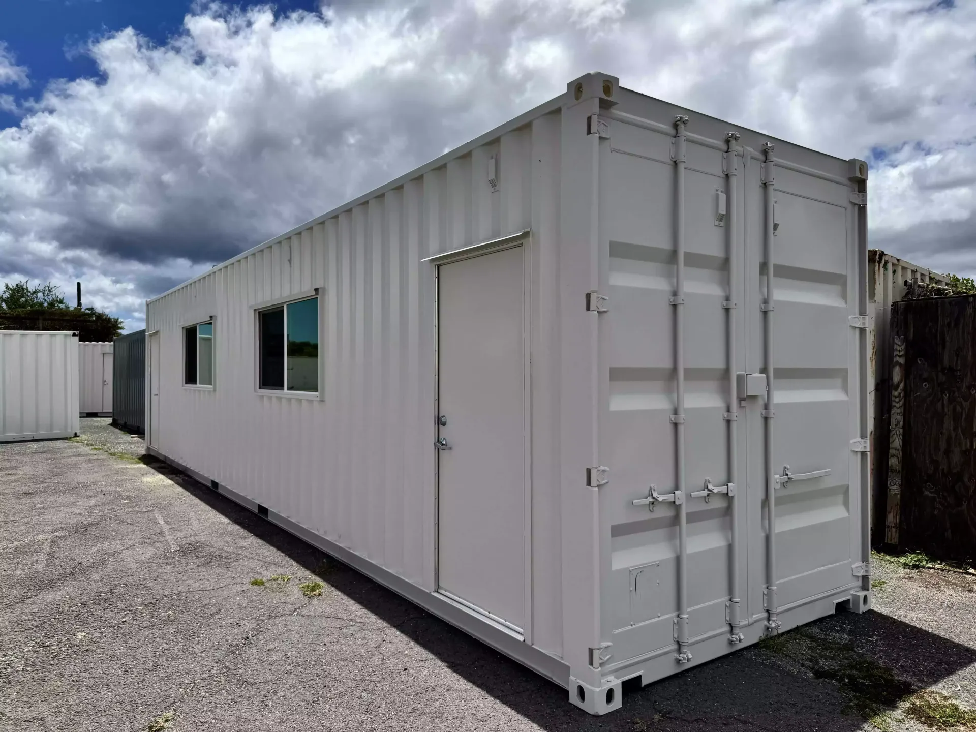 Office containers are built from steel shipping containers designed to withstand heavy weather, job site conditions and daily use. They are secure, long lasting and extremely stable.